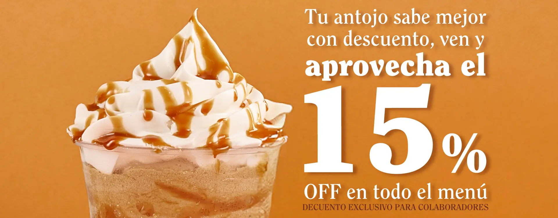 Válido para socios activos del Club EL TIEMPO Vivamos. Válido del 15 de abril de 2025 al 15 de abril de 2026. Vigencia sujeta a modificaciones y/o cambios por parte de la Alianza. Para acceder al beneficio, el cliente debe mencionar la promoción y presentar su tarjeta virtual desde la app del Club en su celular al momento de realizar el pedido. Aplica únicamente para pedidos en punto de venta. Válido a nivel nacional, excepto en aeropuertos y Corferias. No aplica para productos en lanzamiento: Campaña Hershey’s y Frescafés, café empacado ni bebidas embotelladas. No aplica para compras a domicilio, por teléfono, a través de la página web, ni en agregadores. No acumulable con otras promociones y/o descuentos.