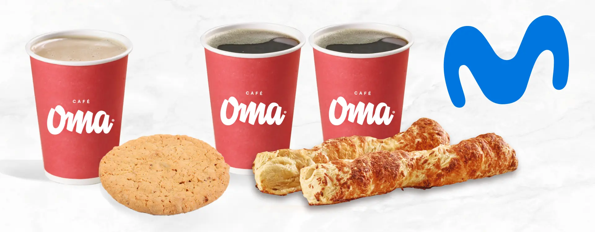 ¡Disfruta hasta 31% dcto. en combo Té Chai de 240 ml y galleta de avena o hasta 47% dcto. en combo para 2 de café de 240 ml + palito de queso! Envía la palabra OMA al 85200 como SMS y recibirás tu código de descuento que podrás presentar directamente en Café Oma. Válido para clientes Movistar (pospago, hogar y prepago) hasta el 31 de octubre de 2025 o hasta agotar existencias (10.000 cupones disponibles). Aplica únicamente en puntos físicos de Café Oma, excepto en aeropuertos y Corferias. Máximo 2 unidades por factura. No aplica para domicilios ni plataformas, no es redimible por dinero ni acumulable con otros descuentos. El beneficio debe ser solicitado al momento del pedido y se verá reflejado en la factura. Sujeto a disponibilidad y horarios de atención de cada punto. Movistar y Café Oma se reservan el derecho de modificar las condiciones sin previo aviso.