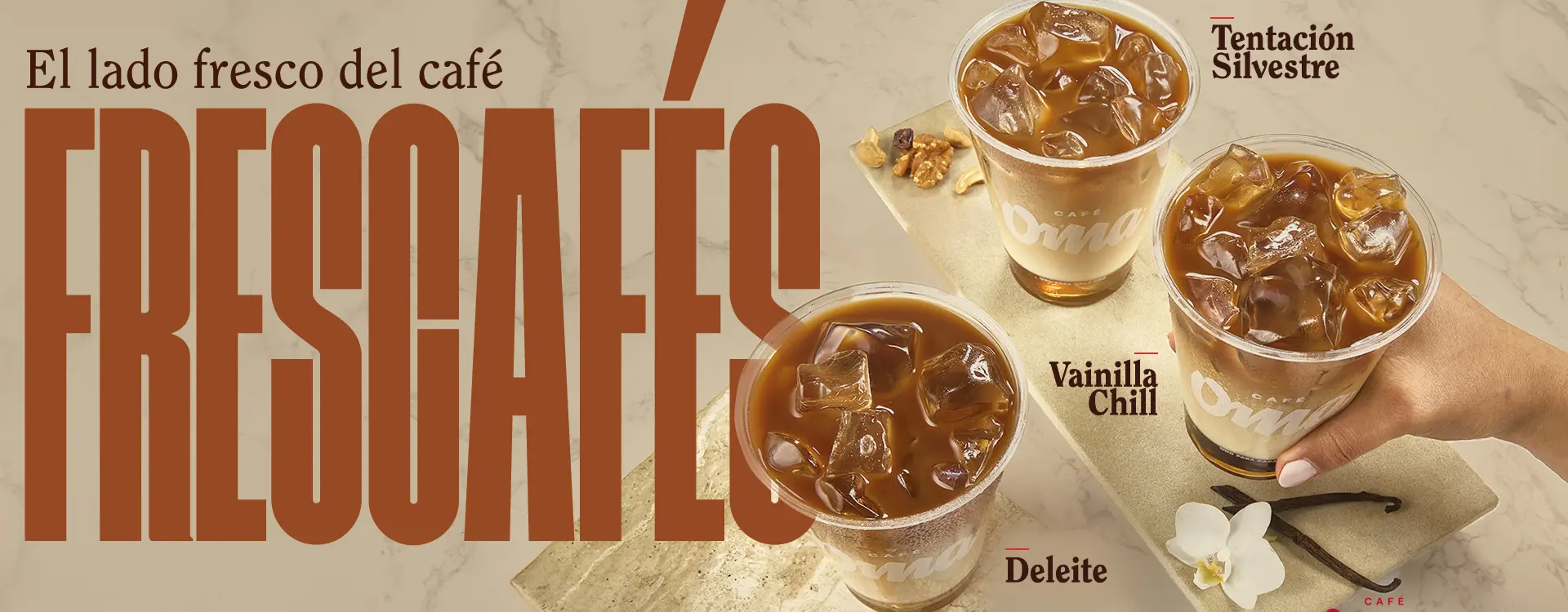 Promoción válida en los puntos de venta Barras OMA donde se encuentre este material exhibido, hasta el 30 de abril de 2025 o hasta agotar existencias. Disponibles 10,000 unidades o hasta que ocurra lo primero. Aplica para las siguientes bebidas frías: Nieves, Bebidas Refrescantes, Granizados, Latte, Americano Frío y Té Chai Frío en presentaciones de 300 y 450 ml, de lunes a viernes entre las 2:00 p.m. y las 6:00 p.m. Las imágenes de los productos son de referencia. La promoción aplica únicamente donde esté exhibido este material de comunicación. No aplica para los canales de domicilios Rappi o DiDi.