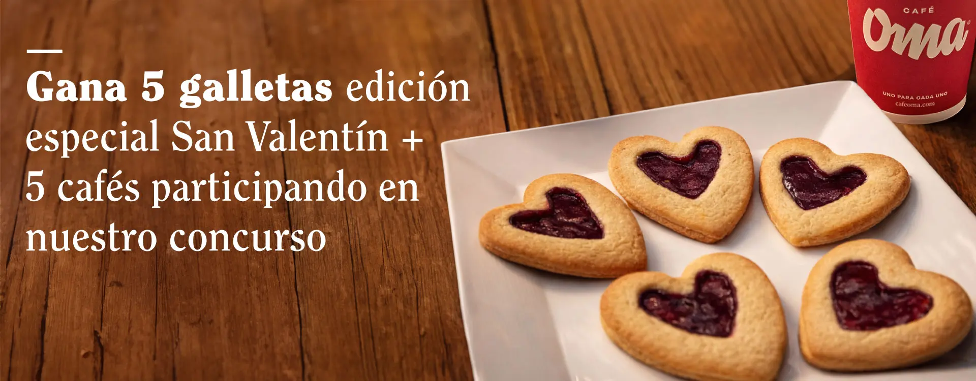 Concurso válido desde las 8:00 a. m. del sábado 14 de febrero de 2026 hasta las 8:00 a. m. del lunes 16 de febrero del mismo año. El premio son 5 galletas edición especial San Valentín + 5 cafés de 300 ml (cappuccino, latte o americano, a elección de los ganadores) para cada ganador (9 en total, 3 en Facebook, 3 en Instagram y 3 en TikTok), que cada cliente podrá reclamar en una de las ciudades en las que Café Oma tiene presencia. En total, se entregarán 45 galletas edición especial San Valentín + 45 cafés de 300 ml (cappuccino, latte o americano a elección de cada ganador). El sábado 14 de febrero se explicarán vía historias los criterios de selección de los comentarios ganadores. Los ganadores deberán ser mayores de edad y serán contactados vía DM durante el transcurso de los 5 días hábiles que le siguen a la fecha de realización del concurso. Las ciudades en las que Café Oma tiene presencia son: Bogotá, Cali, Pereira, Neiva, Palmira, Medellín, Valledupar, Bucaramanga, Barranquilla, Santa Marta. Conoce todos los términos y condiciones aquí.